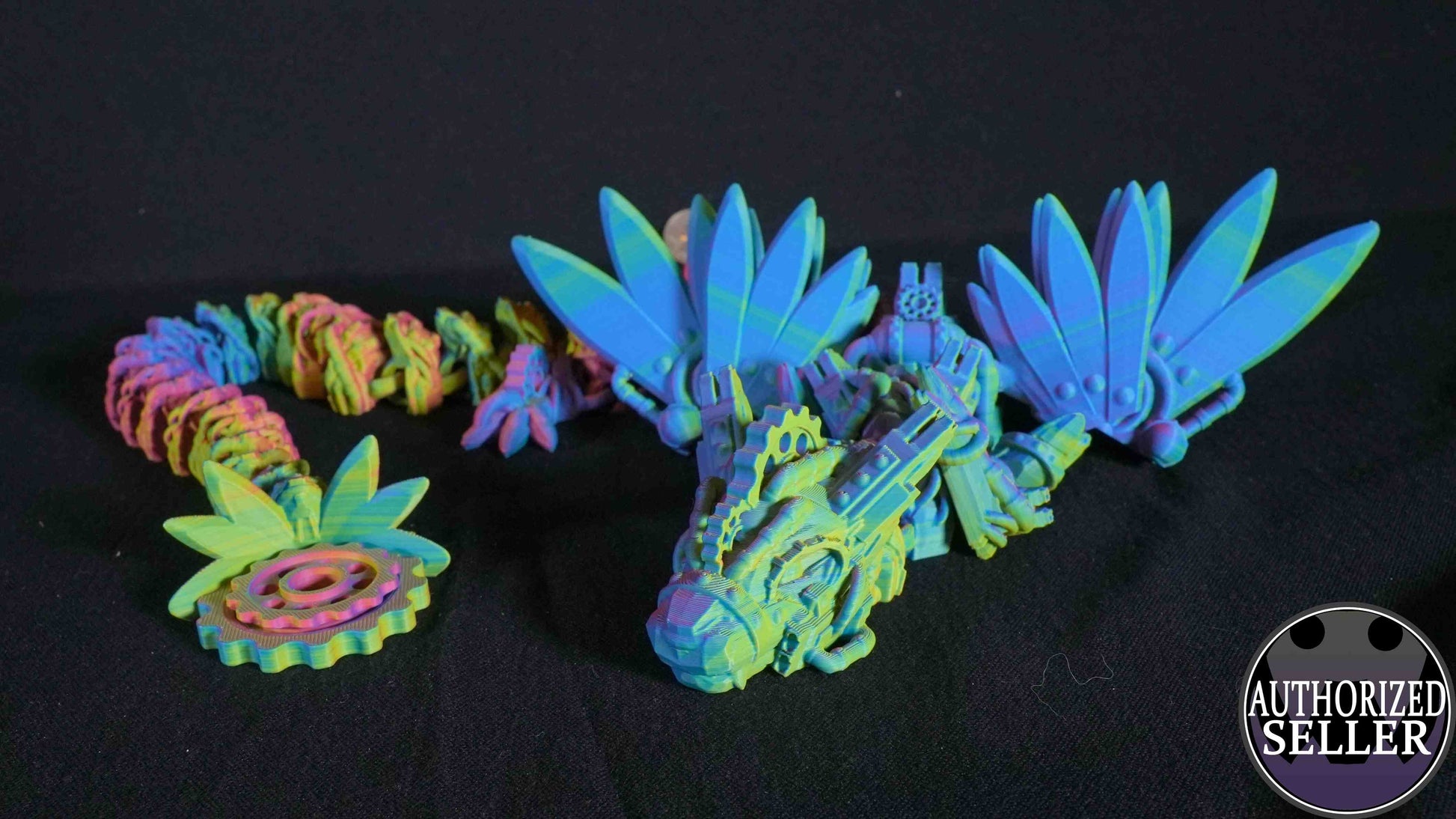 Introducing our Steampunk Dragon, a mesmerizing blend of fantasy and science fiction. This exquisite piece features intricate details, including a movable gear in its tail, showcasing the perfect harmony of steampunk mechanical elements. Each scale, each gear, and each detail are meticulously crafted to bring this whimsical creature to life. Whether displayed on your desk or shelf, this Steampunk Dragon is sure to captivate all who lay eyes on it. Designed by the talented Cinderwing3D and authorized for resale by PrintSmith Studios.